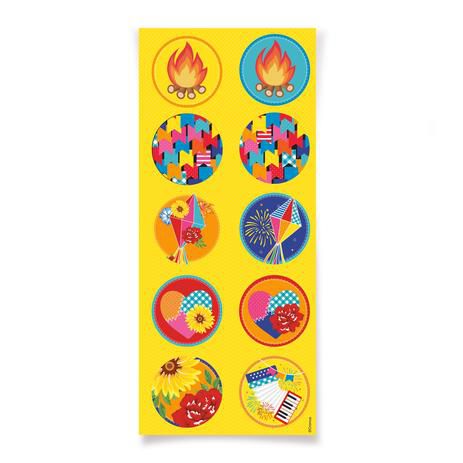Cartela 30 Adesivos Redondos Especial Festa Junina 10x23cm - 1 Pacote com 30 Unidades