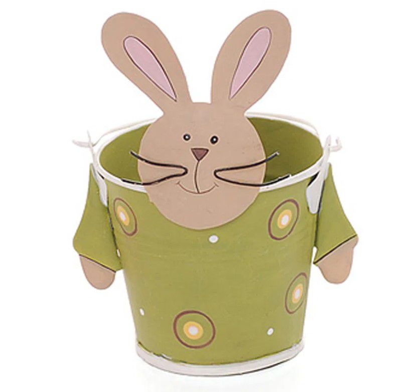 Balde de metal decorativo em metal com Desenho de Coelho CROMUS