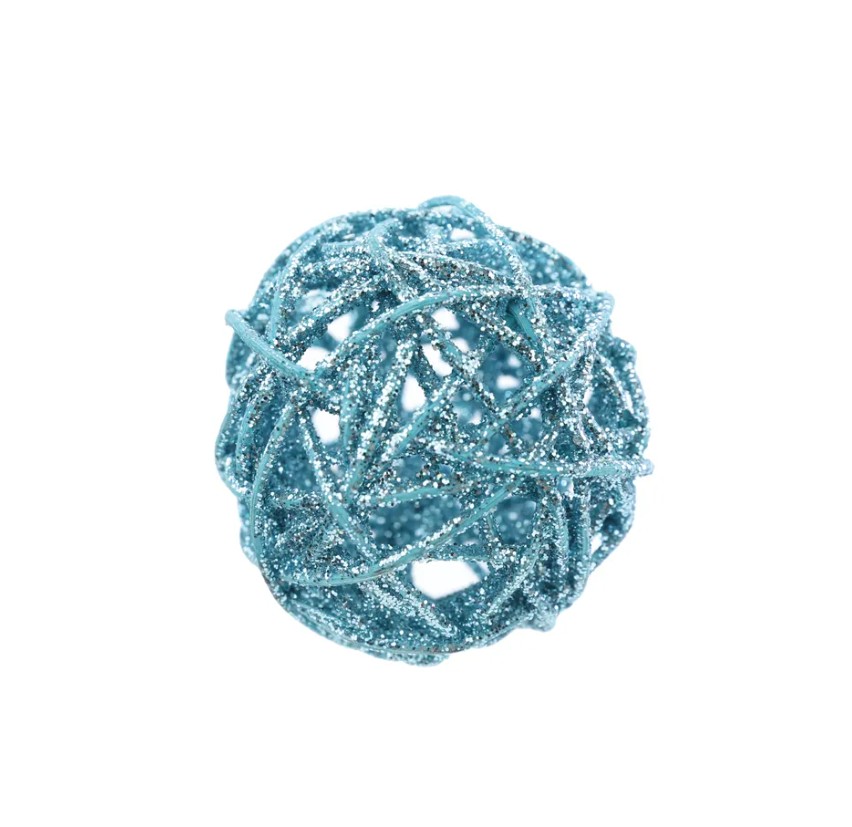 Bola de Natal Rattan Azul Claro 6cm com 1 unidade - Cromus Natal - CCS Decorações e Embalagens
