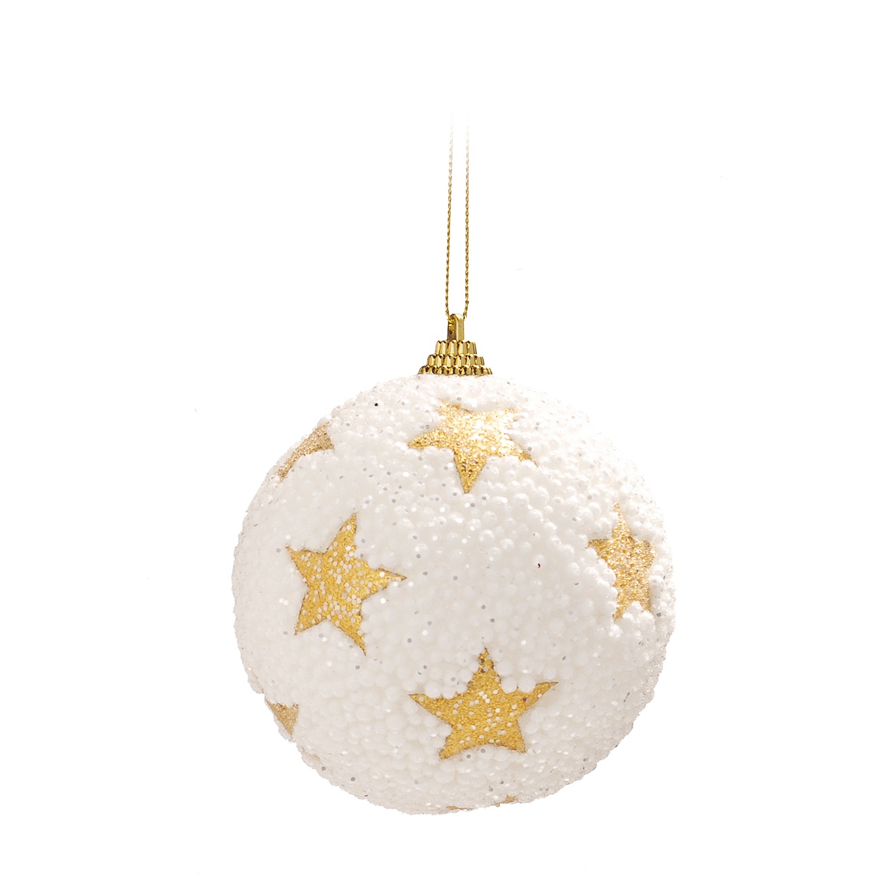 Bolas de Natal Flocada Branca com Estrelas Douradas 10cm -Cromus Natal - CCS Decorações e Embalagens