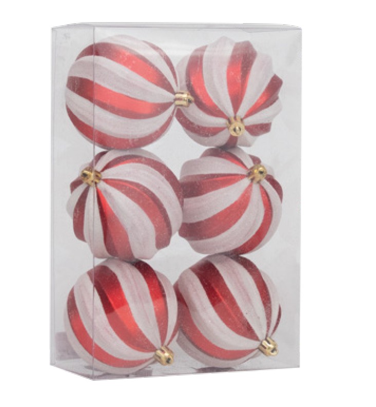 Bolas de Natal Espiral Listras Vermelha e Branca 8cm - Cromus Natal - CCS Decorações e Embalagens