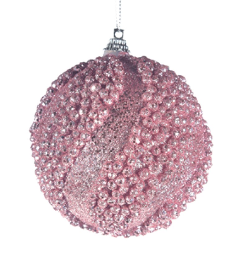 Bolas de Natal Flocada Glitter Rosa Claro 10cm - Cromus Natal - CCS Decorações e Embalagens