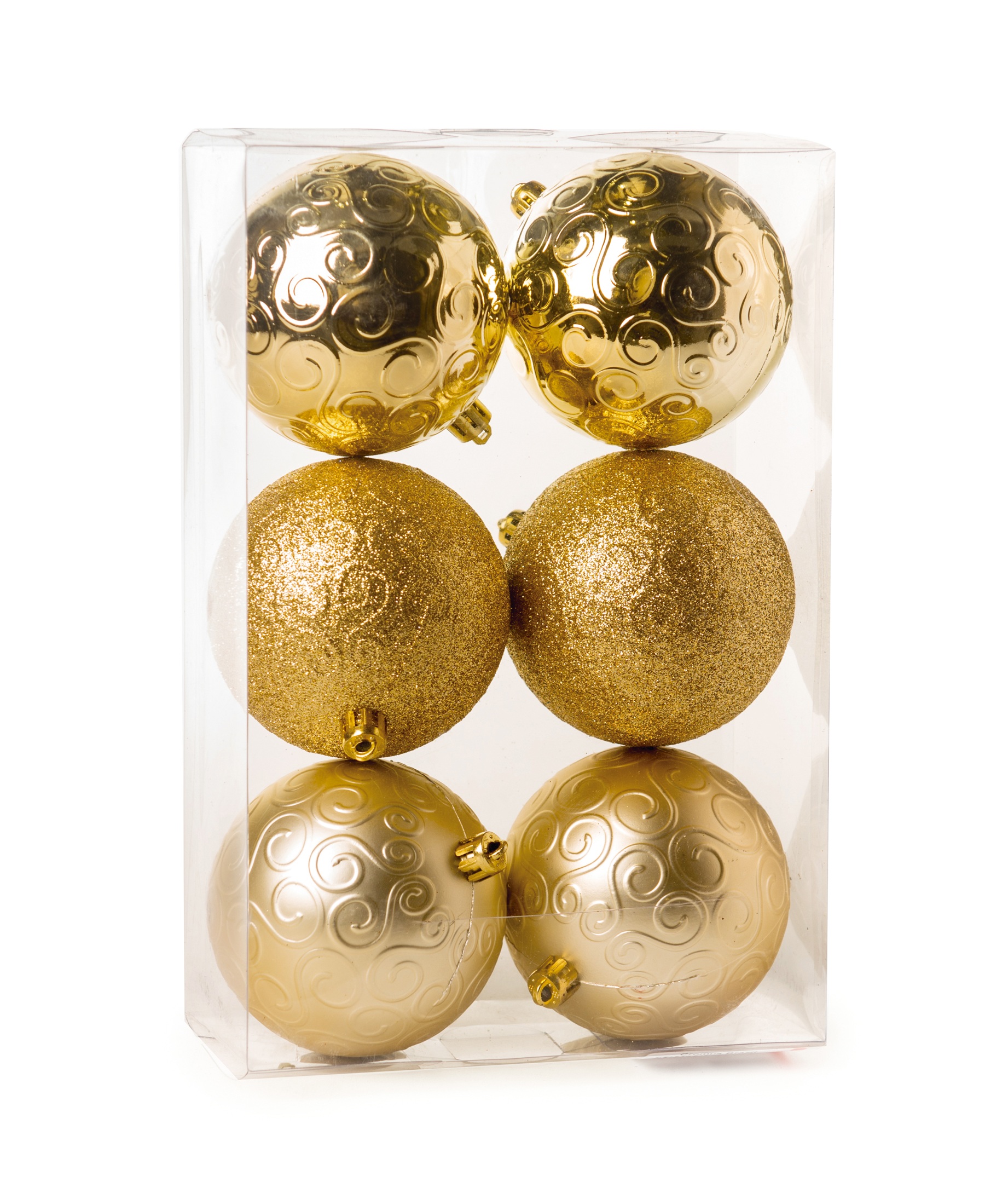 Bolas de Natal Lisa, Glitter e Arabesco Dourado 8cm - Cromus Natal - CCS Decorações e Embalagens