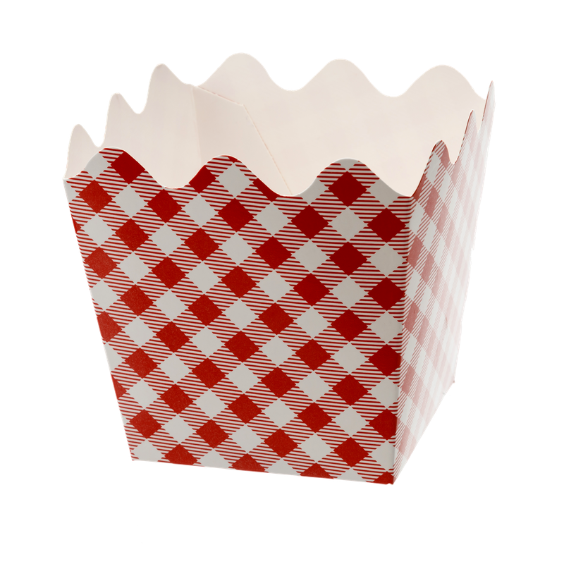 Cachepot de Papel Xadrez Vermelho e Branco 9x9x9cm com 8 Un - Silver