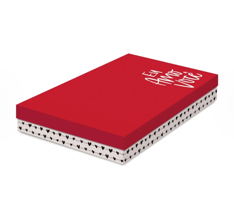 Caixa de Presente Retangular com Tampa "Eu Amo Você" 30x21x5.5cm - 1 unidade - Cromus - CCS Decorações e Embalagens