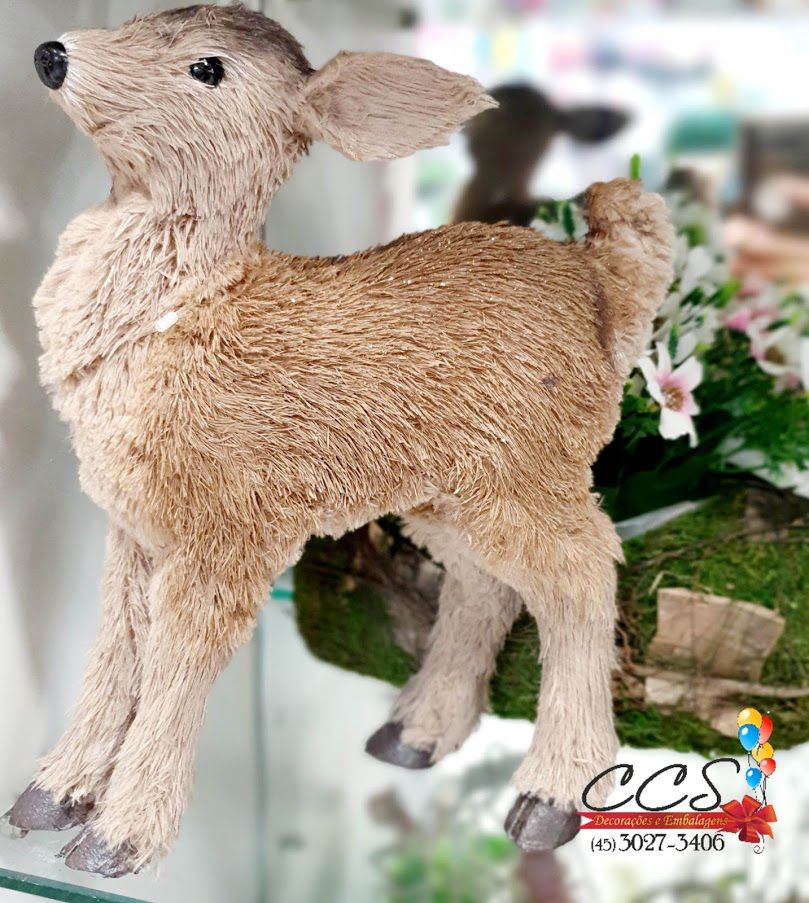 Cervo Decorativo Marrom e Cinza 37cm - 01 unidade - Cromus - Cecilia Dale