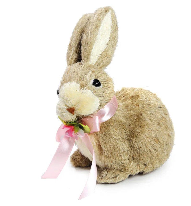 Cromus - Coelha de Palha Laço e Flores e Rosa Claro (Amendoa) - 1 Unidade