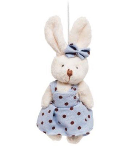 Mini Coelho de Pelúcia com Vestido Azul Poá - Páscoa Cromus - CCS Decorações e Embalagens