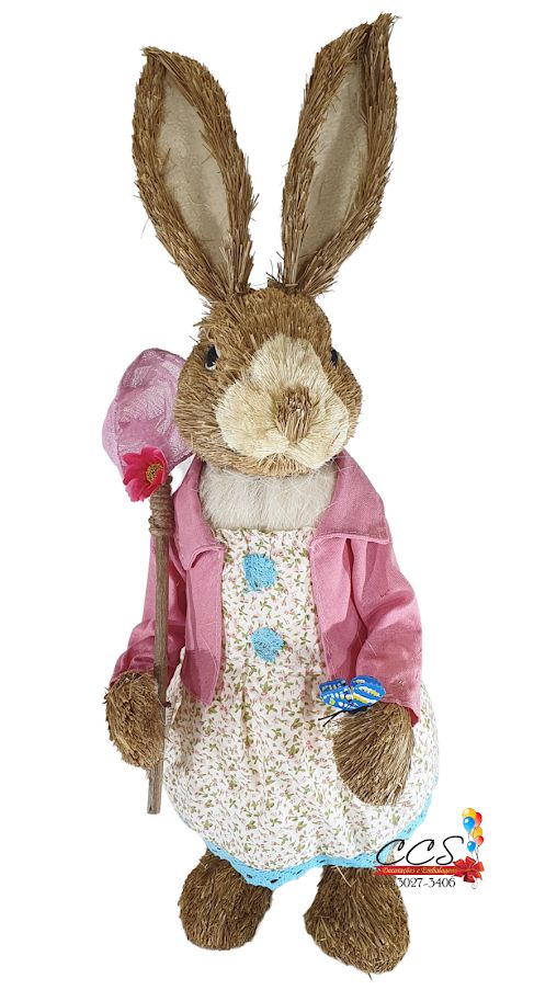 Coelha de Palha em Pé com Borboleta na Mão 61cm - Páscoa Cromus - CCS Decorações e Embalagens