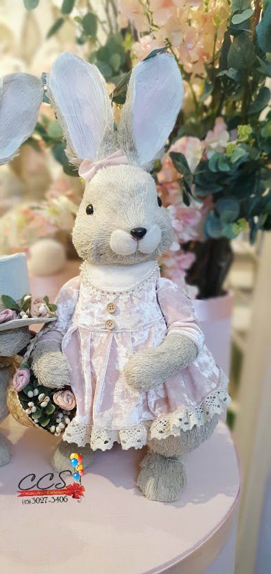 Coelha Decorativa Veludo Rosa Claro Verde com Bege - 1 Unidade