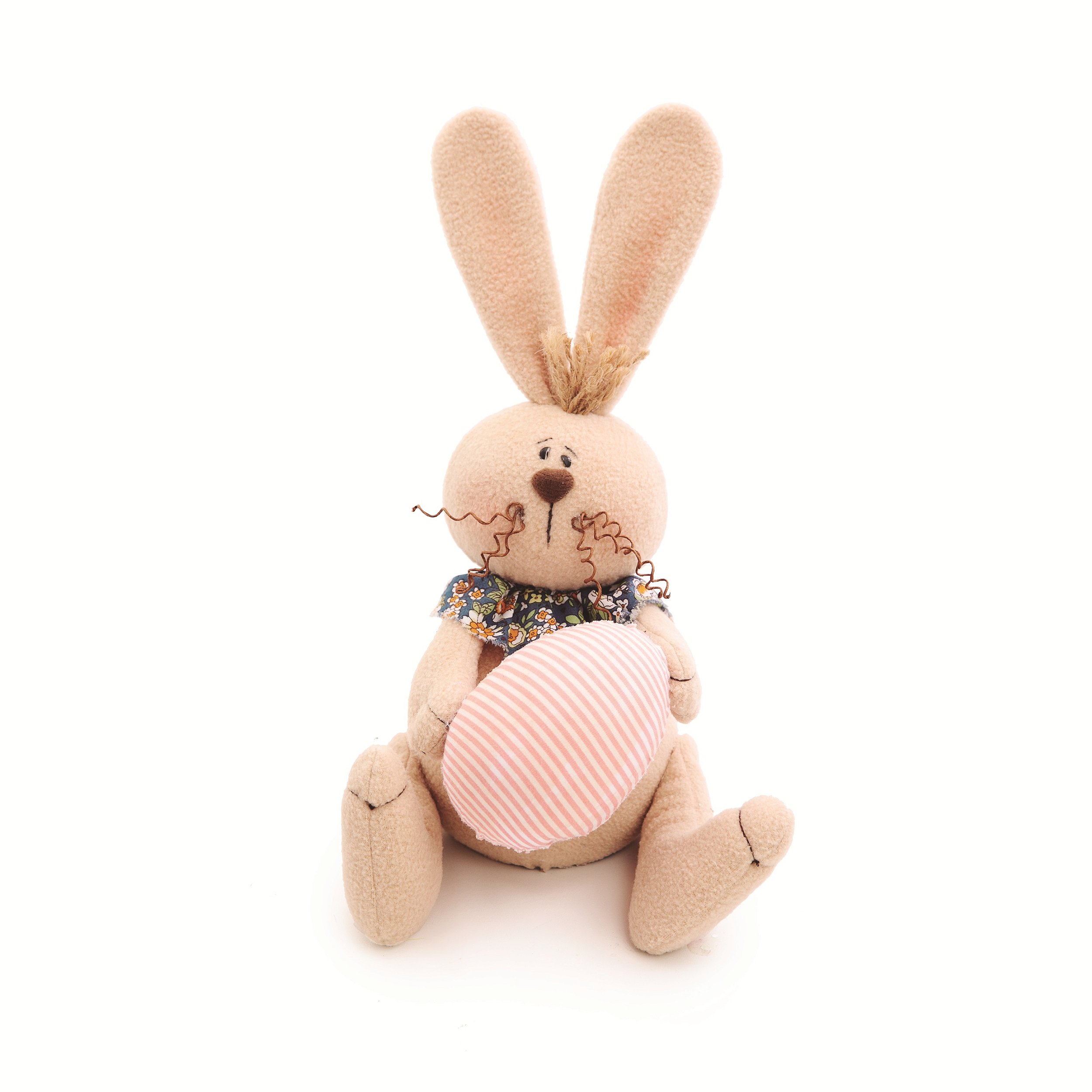 Enfeite Coelha Sentada Segurando Ovo Rosa Listrado - Cromus Páscoa - CCS Decorações e Embalagens