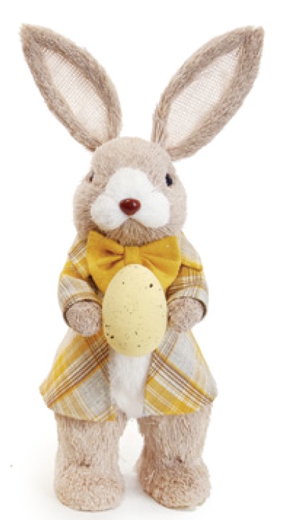 Coelho em Pé de Palha Italiana com Roupa Xadrez Amarela Segurando Ovo - Páscoa Cromus - CCS Decorações e Embalagens