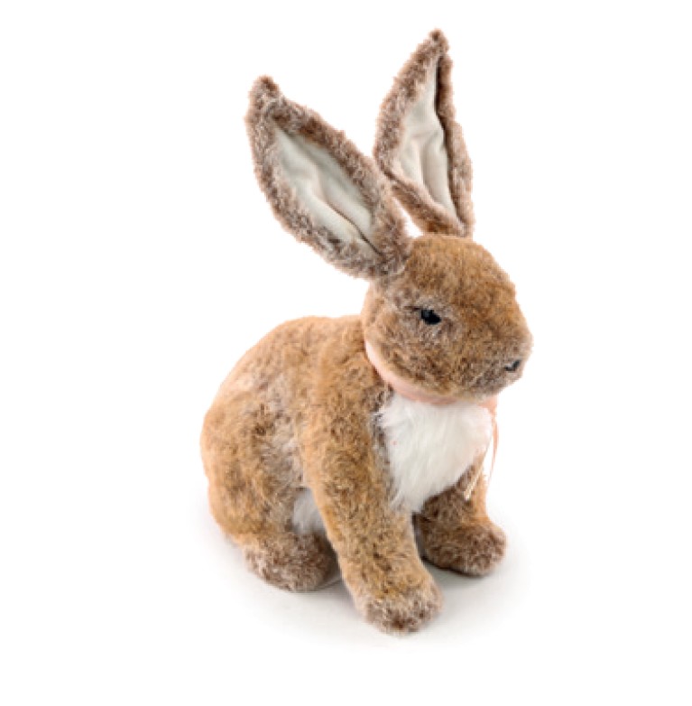 Coelho de Pelúcia Rigida Marrom Sentado com Arranjo no Pescoço - Cromus - CCS Decorações e Embalagens