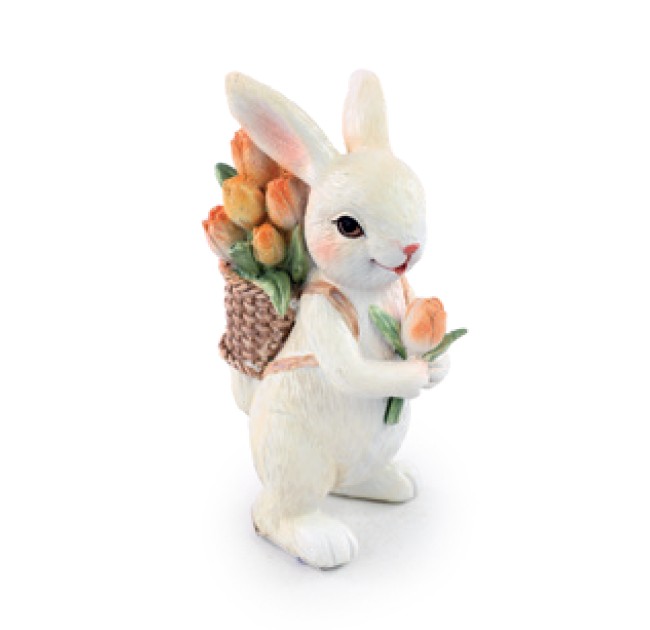 Coelho Decorativo de Resina Com Cesta com Tulipas - Cromus - CCS Decorações e Embalagens