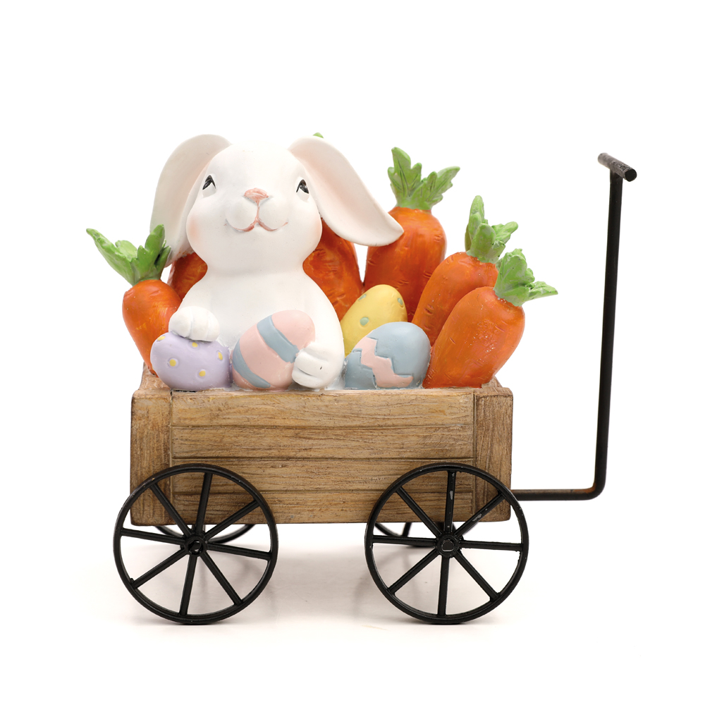 Coelho de Resina no Carrinho com Cenouras e Ovos - Páscoa Cromus - CCS Decorações e Embalagens