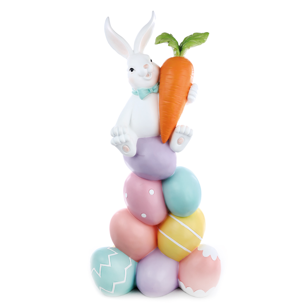 Coelho de Resina Gigante na Pilha de Ovos Coloridos - Páscoa Cromus - CCS Decorações e Embalagens