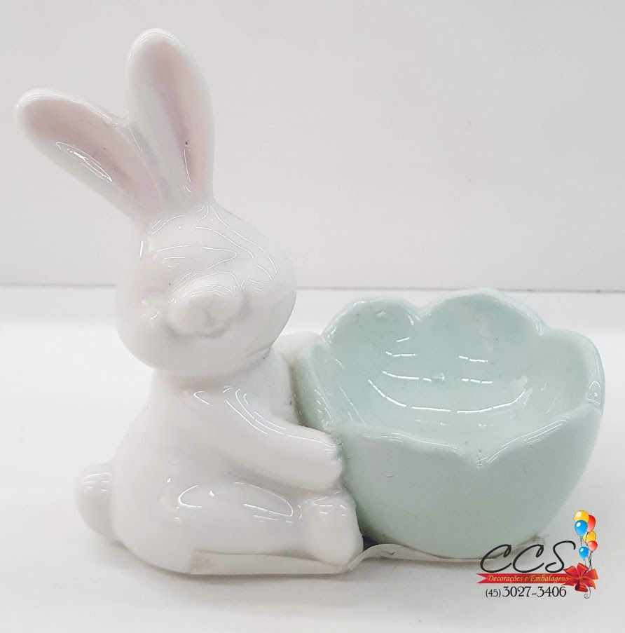 Porta Ovo Verde Candy com Coelho De Páscoa Cerâmica Decoração Branco - Cromus (Coleção Bala de Goma)