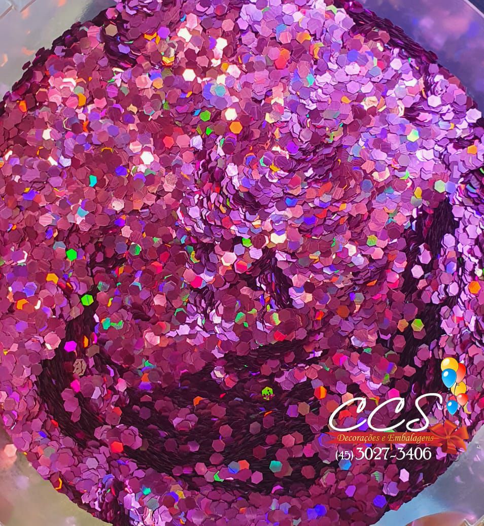 Pacote de confete metalizado, formato mini hexagonos, de tamanho aproximado de 0.03mm, um pouco maior que o Glitter.