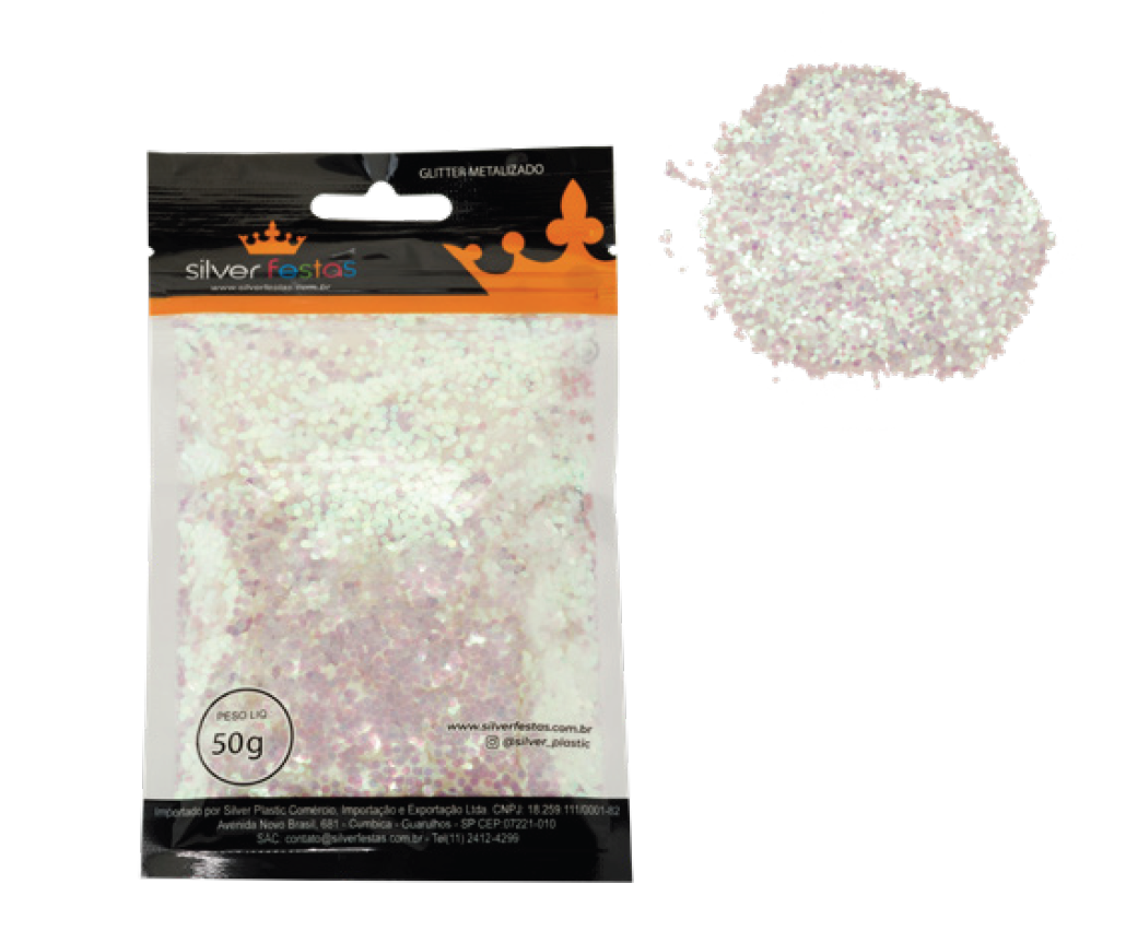 Confete Metalizado 2MM Furta-Cor Branco 50 Gramas - Silver