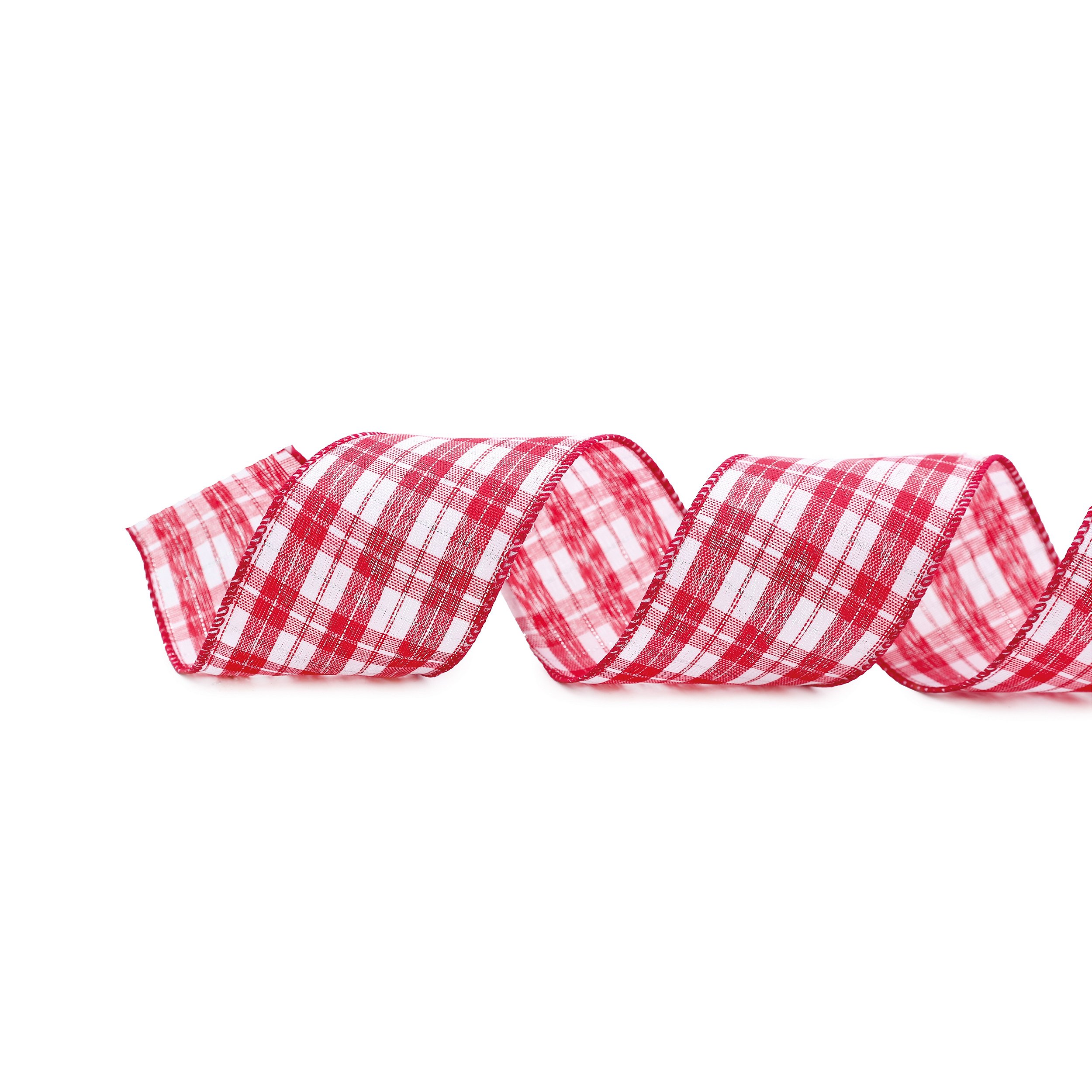 Fita Aramada de Natal Xadrez Vermelho e Branco com Fio Metalizado Prata 6.3cm - Cromus - CCS Decorações e Embalagens