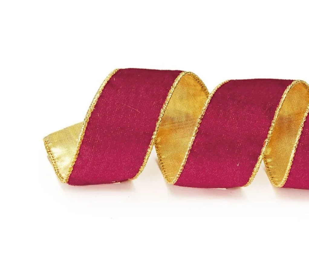 Fita Aramada de Natal Dupla Face Vermelho Veludo e Verso Dourada Metalizada com Borda Dourada 10cm - Cromus - CCS Decorações e Embalagens