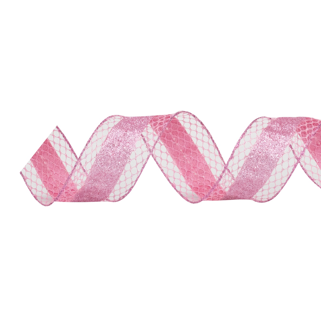 Fita Aramada de Natal Rosa Tela com Glitter 3,8cm - Cromus - CCS Decorações e Embalagens