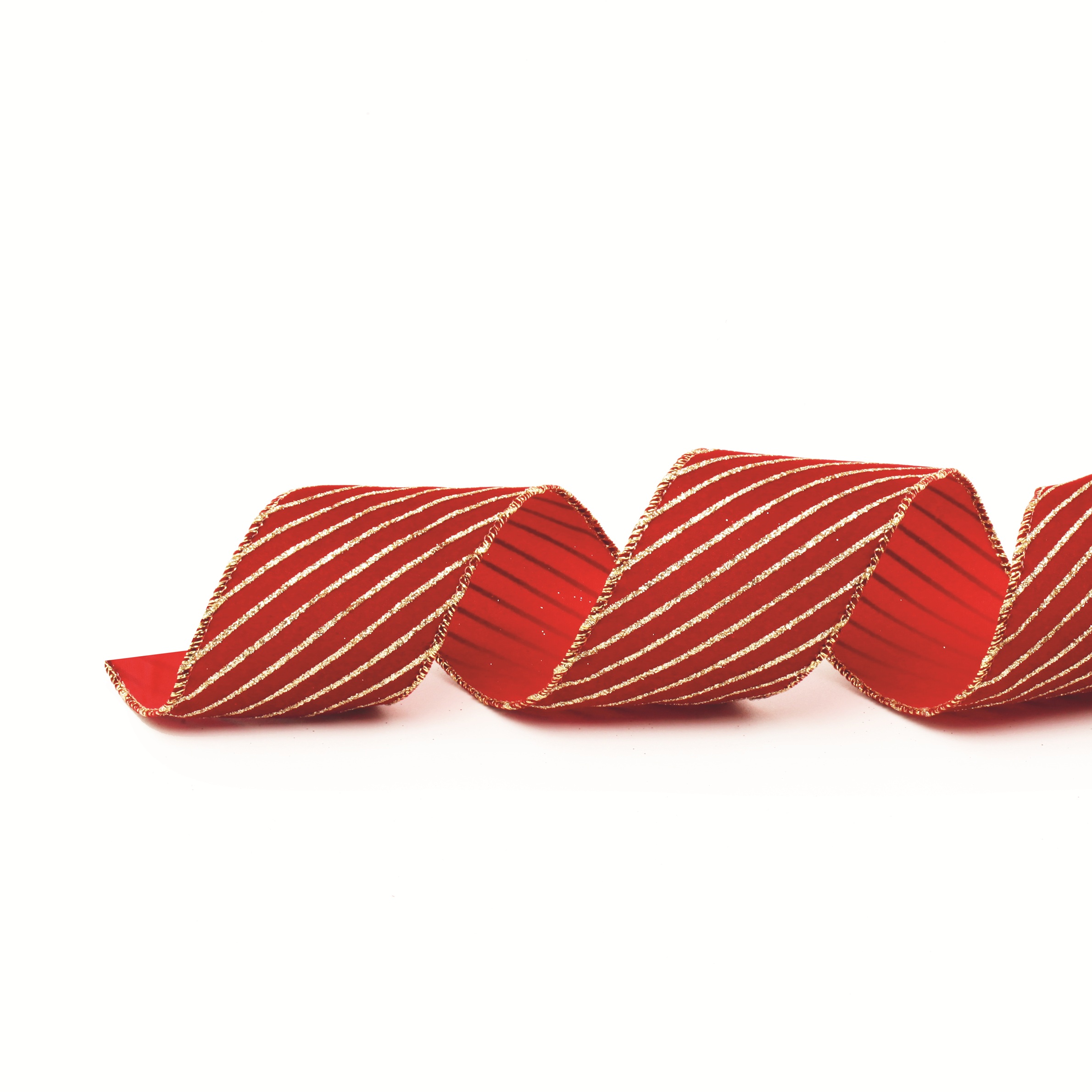 Fita Aramada de Natal Veludo Vinho com Listras de Glitter Dourado 6.3cm - Cromus - CCS Decorações e Embalagens