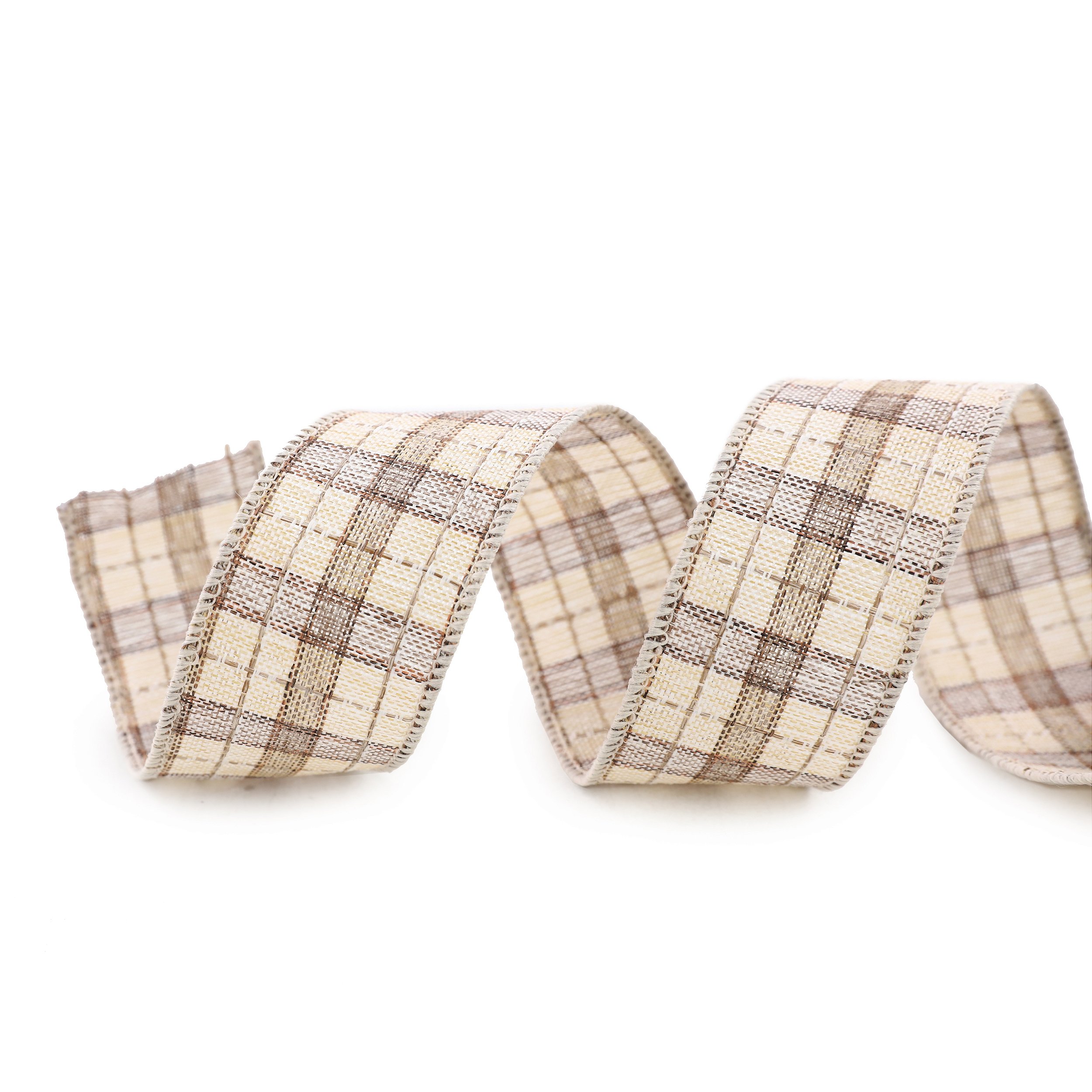 Fita Aramada de Natal Linho Xadrez Marrom e Nude 3.8cm - Cromus - CCS Decorações e Embalagens