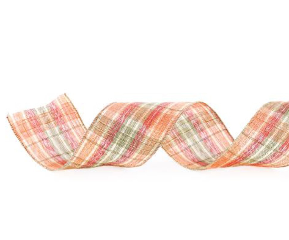 Fita Aramada de Natal Xadrez Vermelho, Verde e Laranja 6.3cm - Cromus - CCS Decorações e Embalagens