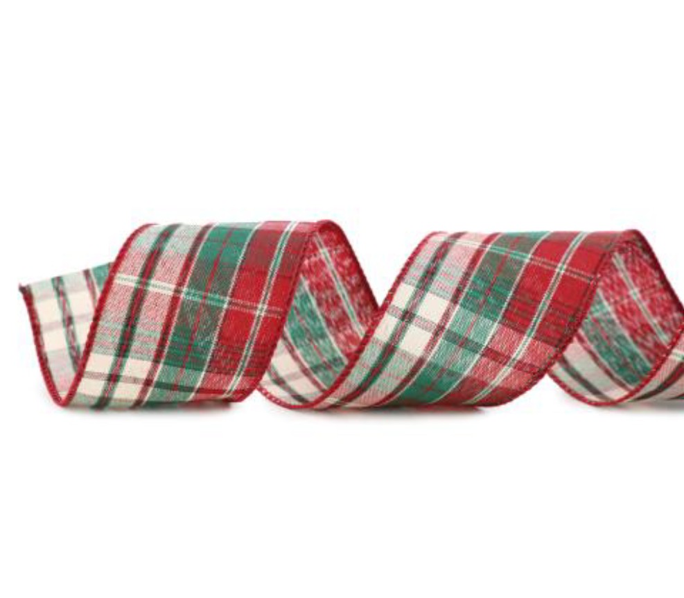 Fita Aramada de Natal Xadrez Vermelho, Verde e Bege 6.3cm - Cromus - CCS Decorações e Embalagens
