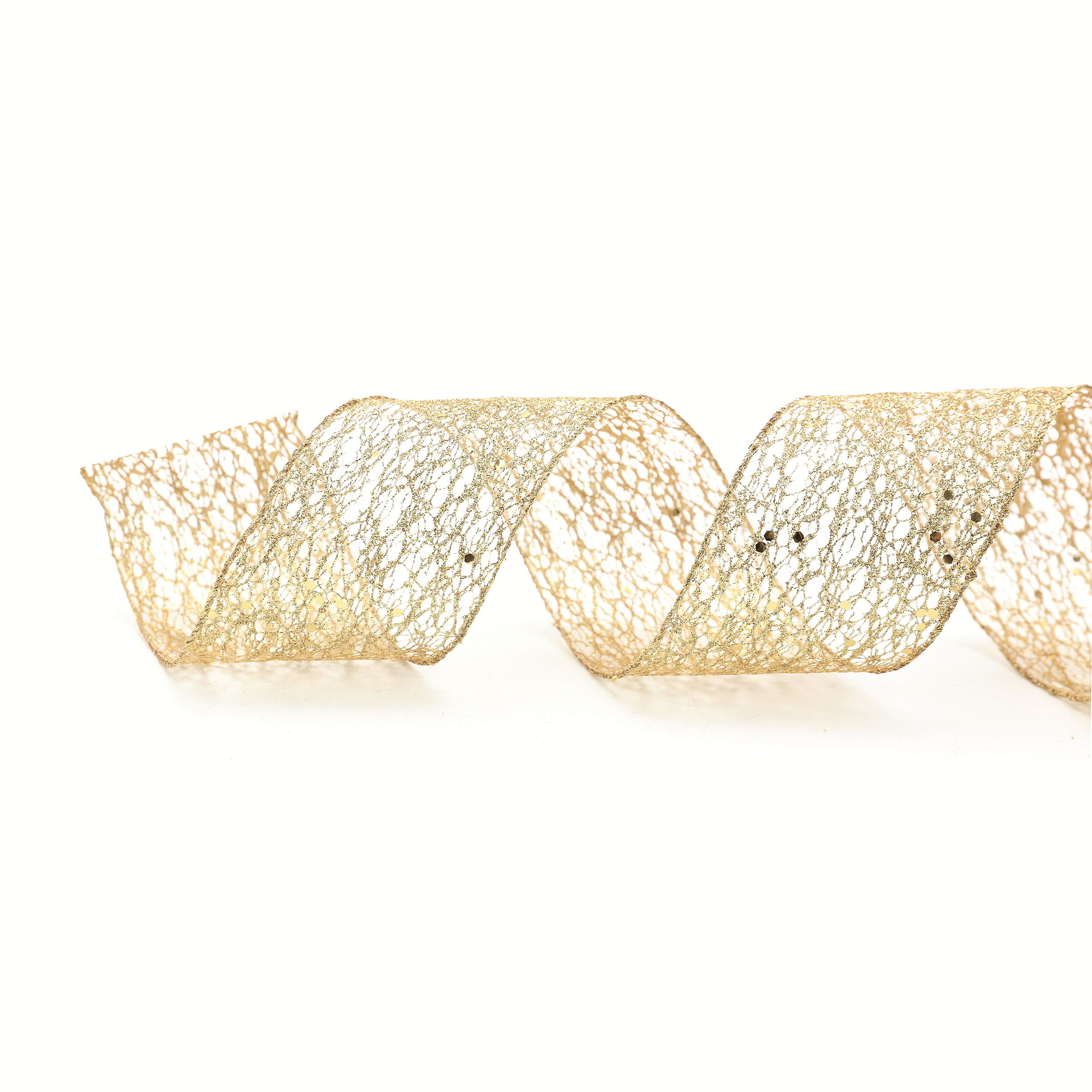 Fita Aramada de Natal Tela Glitter Dourado 6.3cm - Cromus - CCS Decorações e Embalagens