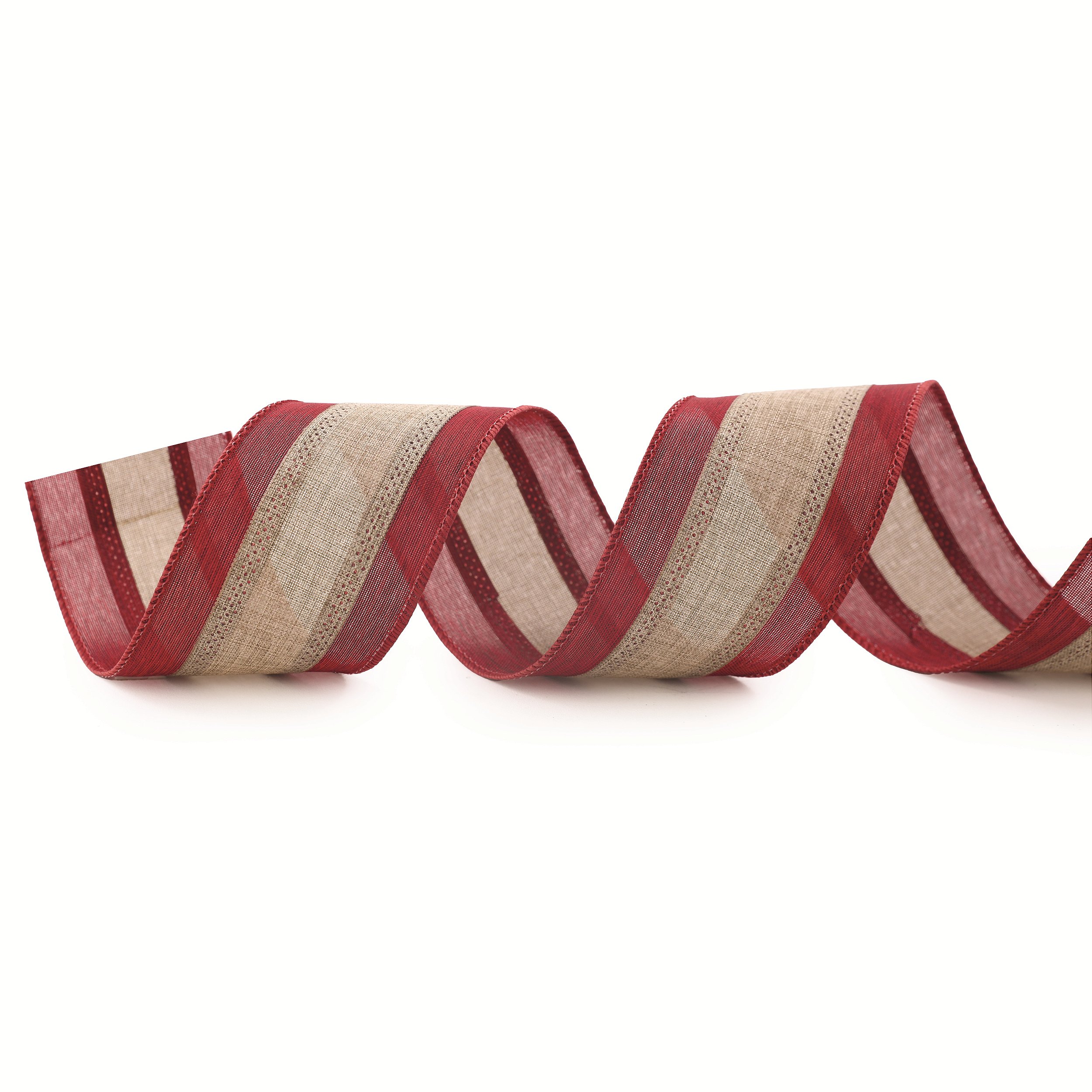 Fita Aramada de Natal Linho Vermelho Marsala com Faixa Central Cru - Cromus - CCS Decorações e Embalagens