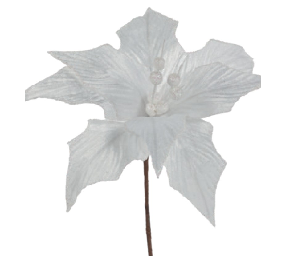 Flor de Natal Poisettia Branca com Borda de Glitter Cromus Natal - CCS Decorações e Embalagens