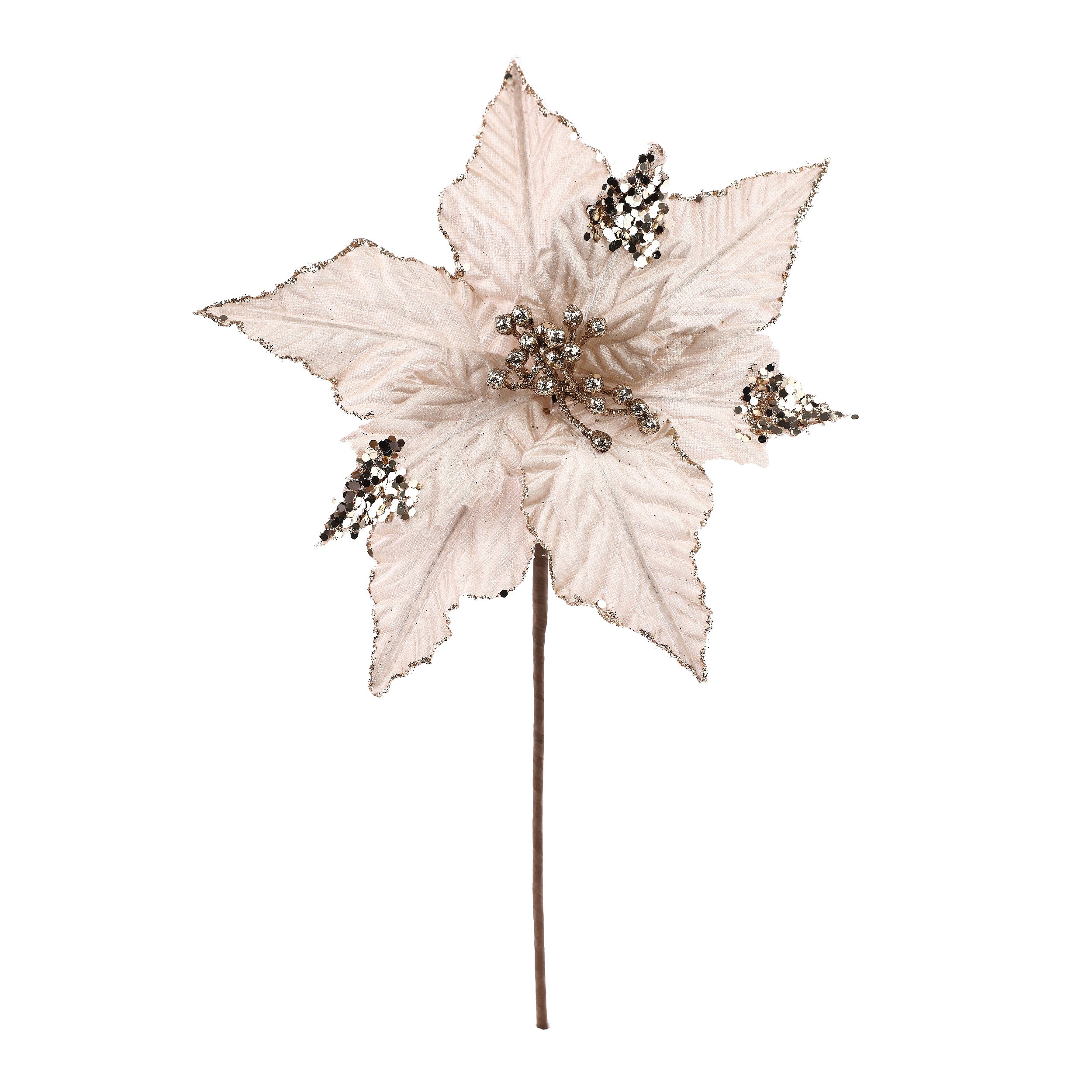 Flor de Natal Poisettia Veludo Chá com Borda de Glitter - Cromus Natal - CCS Decorações e Embalagens