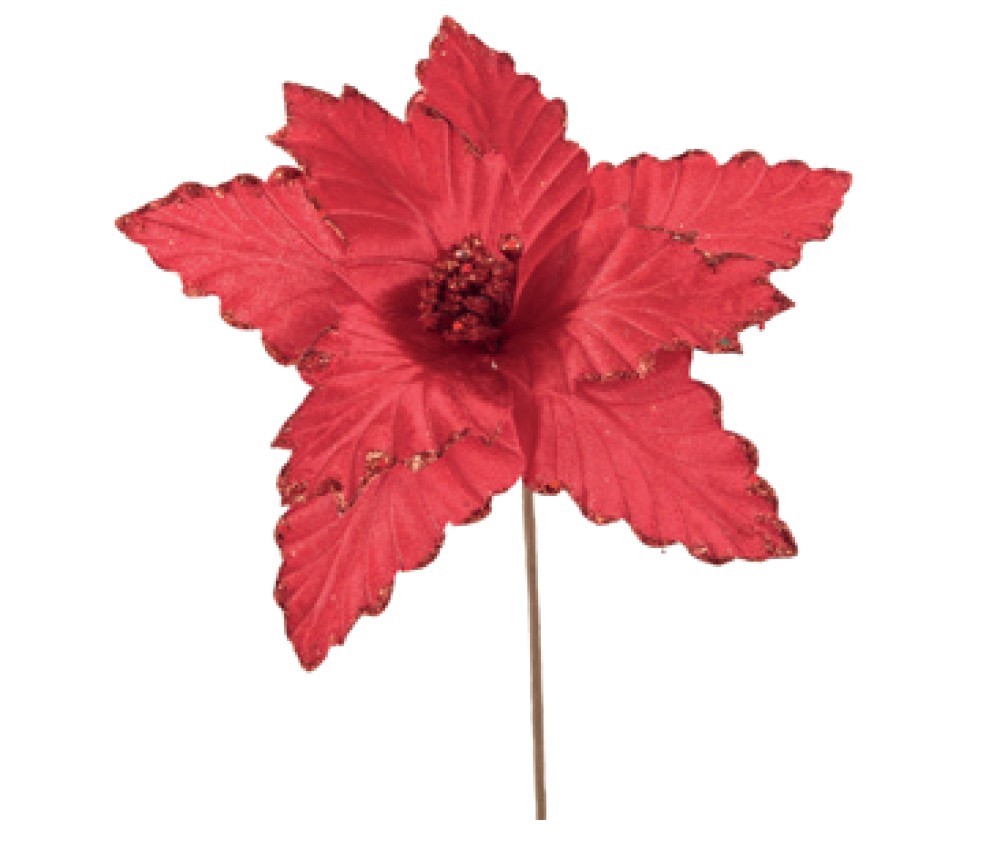 Flor de Natal Poisettia Vermelha com Borda de Glitter Cromus Natal - CCS Decorações e Embalagens