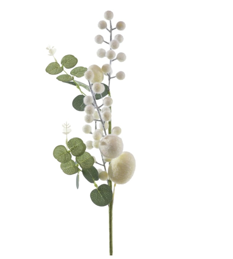 Galho de Páscoa Ovos Flocados com complemento de Galhos Eucalipto e Frutinhas  - Páscoa Cromus - CCS Decorações e Embalagens