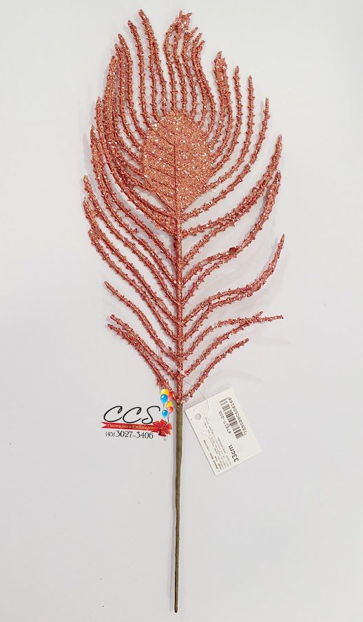 - Galho Decorativo de Natal Pena de Pavão de Glitter Rose .