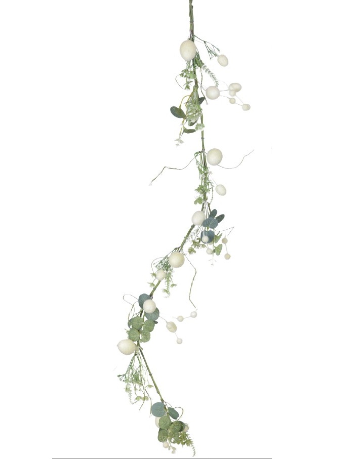 Galho Longo Festão de Páscoa Ovos Flocados com complemento de Galhos Eucalipto e Frutinhas  - Páscoa Cromus - CCS Decorações e Embalagens
