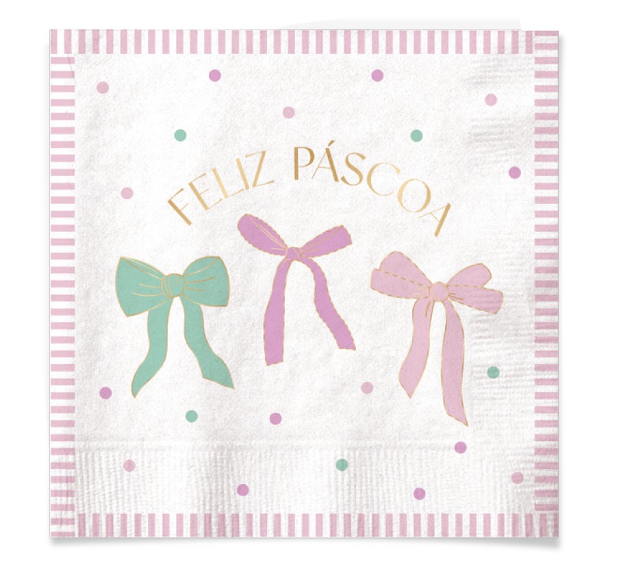 Guardanapo de Papel Decorado de Páscoa Estampado Laços Feliz Páscoa 33cm - 20 unidades - Cromus