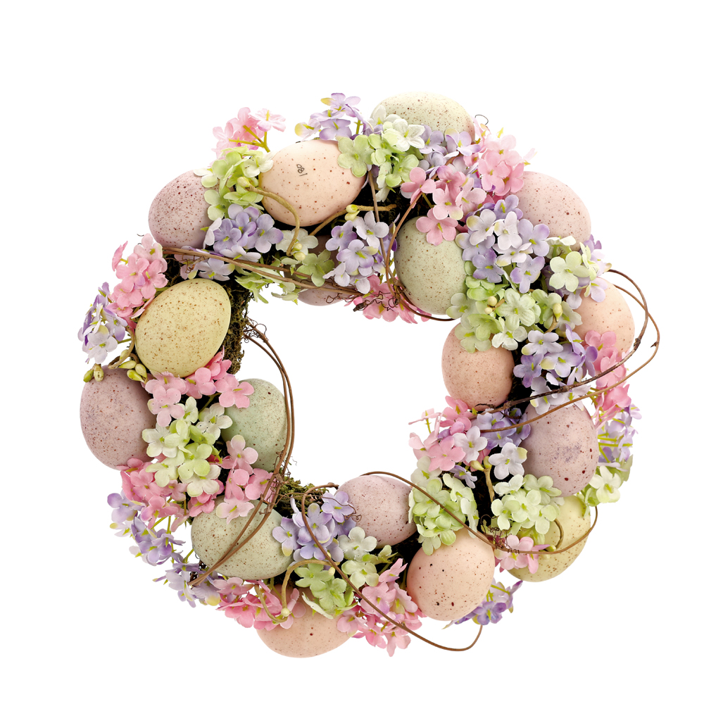 Guirlanda De Páscoa Ovos e Flores Cores Claras, Rosa, Lilas, Amarelo Fondant - Páscoa Cromus - CCS Decorações e Embalagens