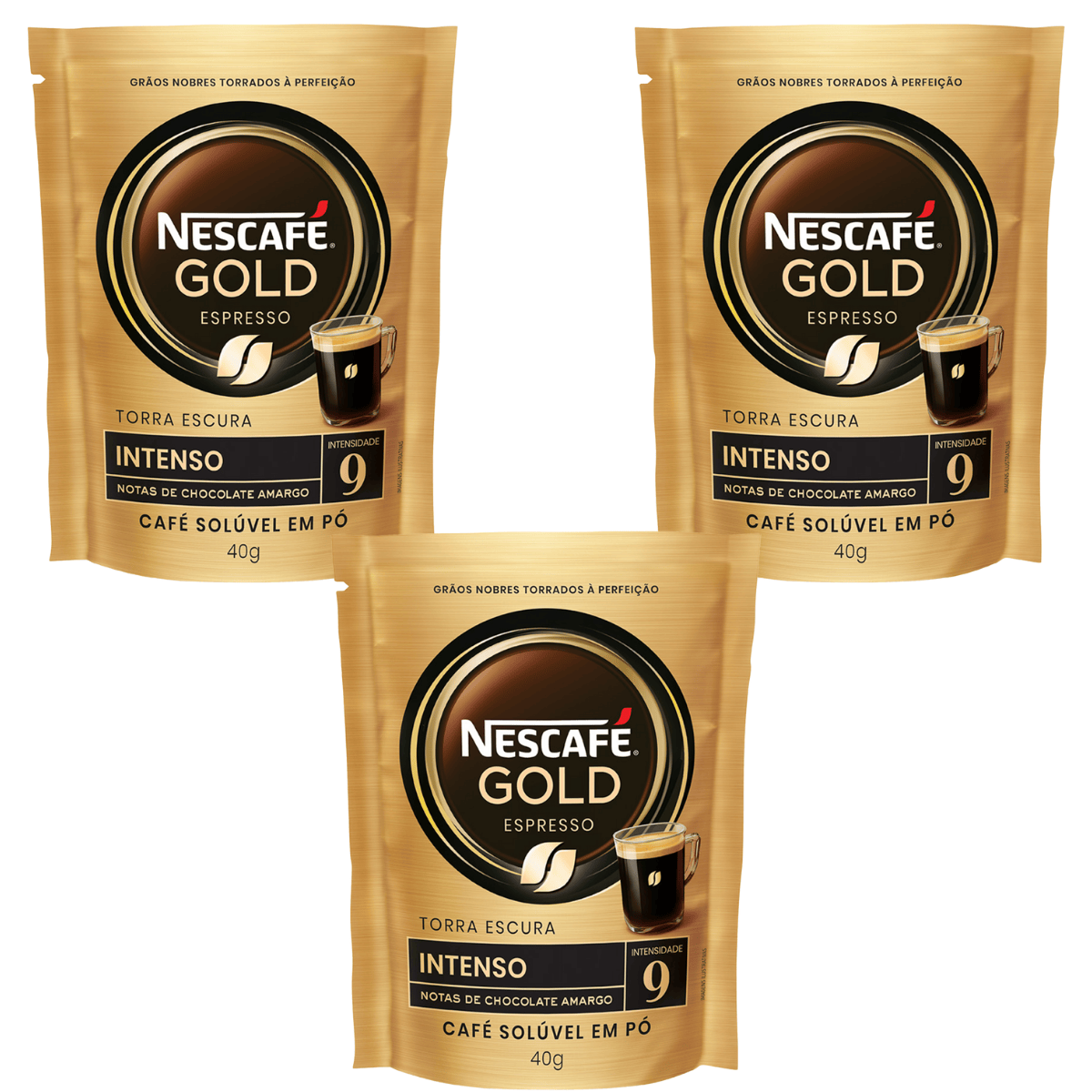 KIT 3 Nescafé Gold Espresso Intenso Intensidade 9 solúvel em pó 40g SACHE.