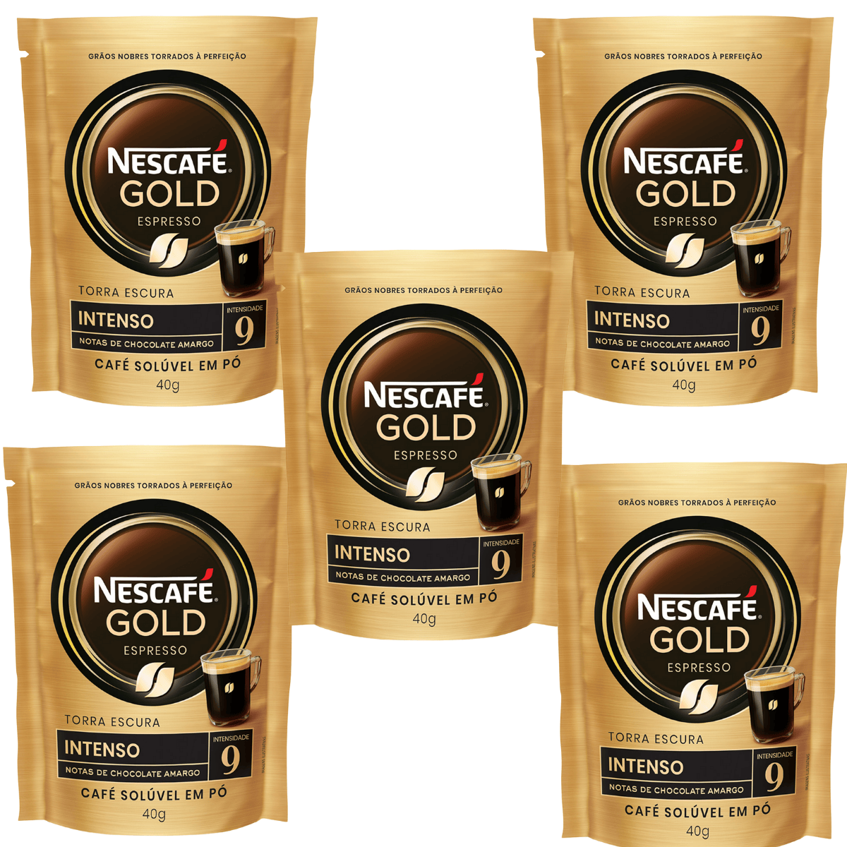 KIT 5 Nescafé Gold Espresso Intenso Intensidade 9 solúvel em pó 40g SACHE.