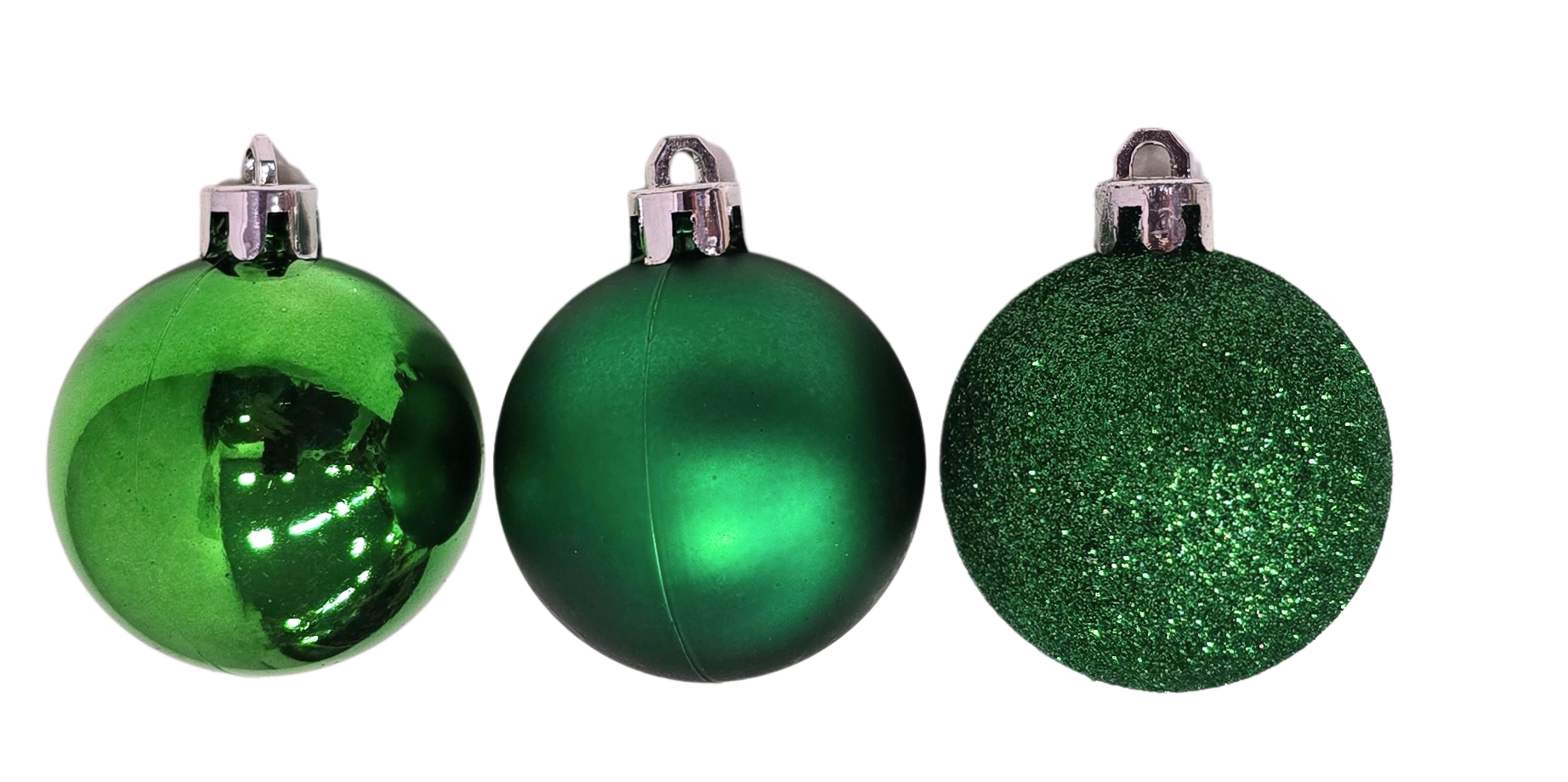 Bolas de Natal Verde Escuro Glitter, Lisa e Brilho 5cm - Cromus Natal - CCS Decorações e Embalagens