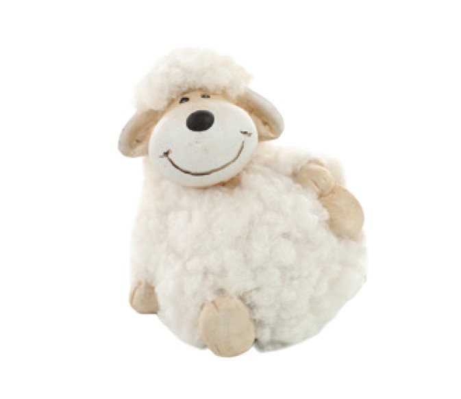 Enfeite Ovelha de Cerâmica com Pele Lã Sintetica - Cromus Páscoa - CCS Decorações e Embalagens