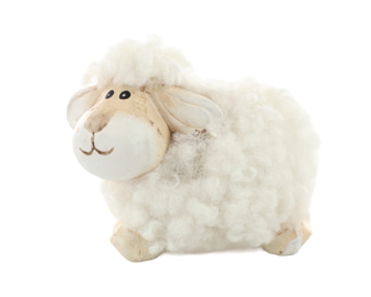 Enfeite Ovelha de Cerâmica com Pele Lã Sintetica - Cromus Páscoa - CCS Decorações e Embalagens