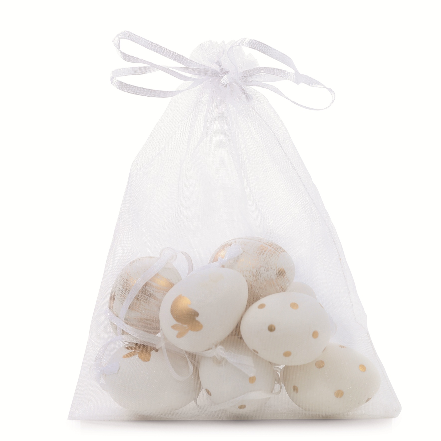 Ovos Para Pendurar Tipo Codorna Branco com Dourado 9un - Ref 1025467 Cromus