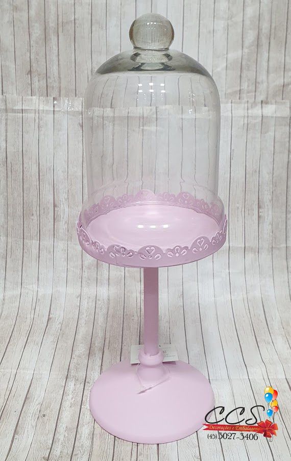 Porta Cupcake Solitário com Cúpula e Borda de Renda Metal Cor Rosa - Cromus