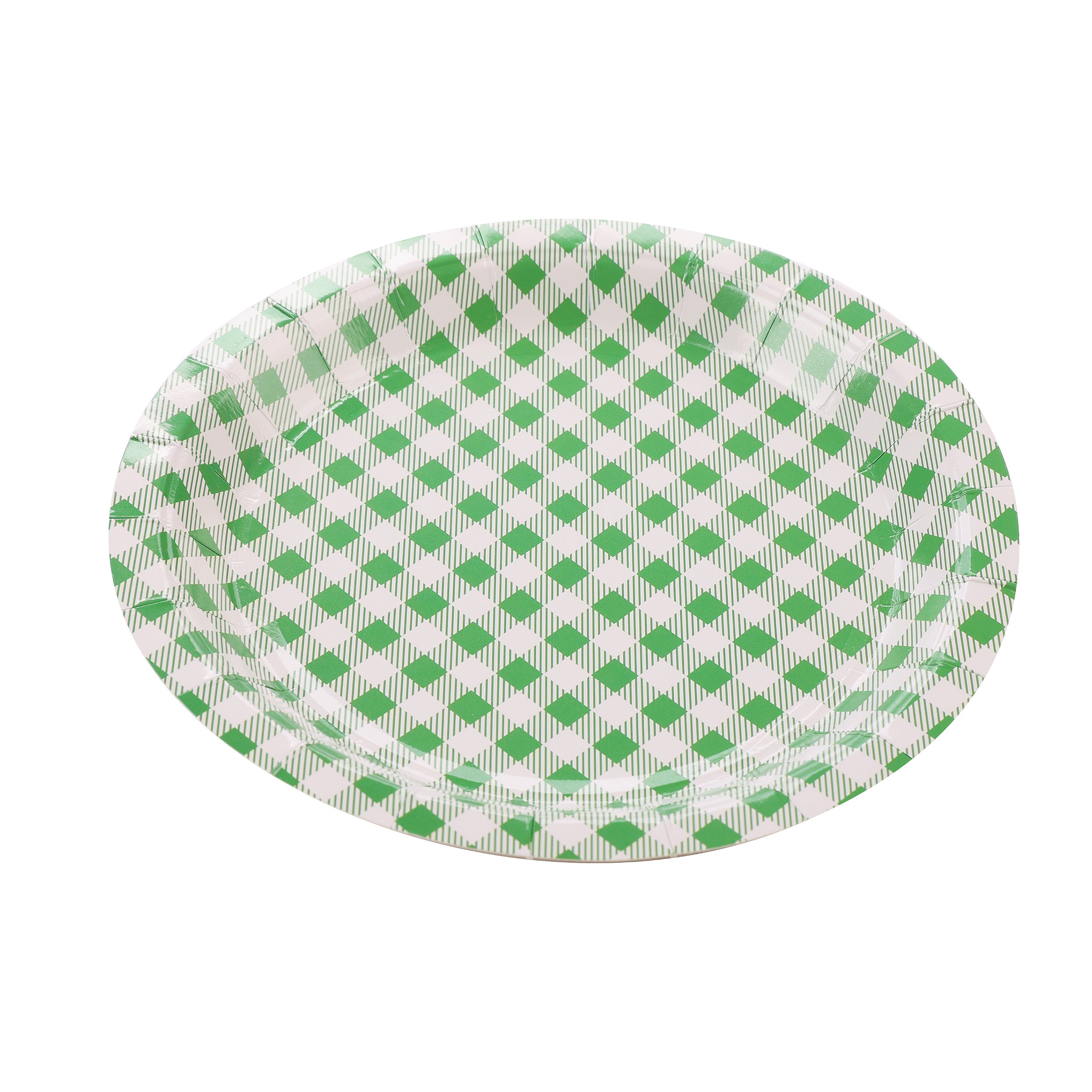 Prato de Papel Xadrez Verde e Branco 18cm com 10Un - Silver