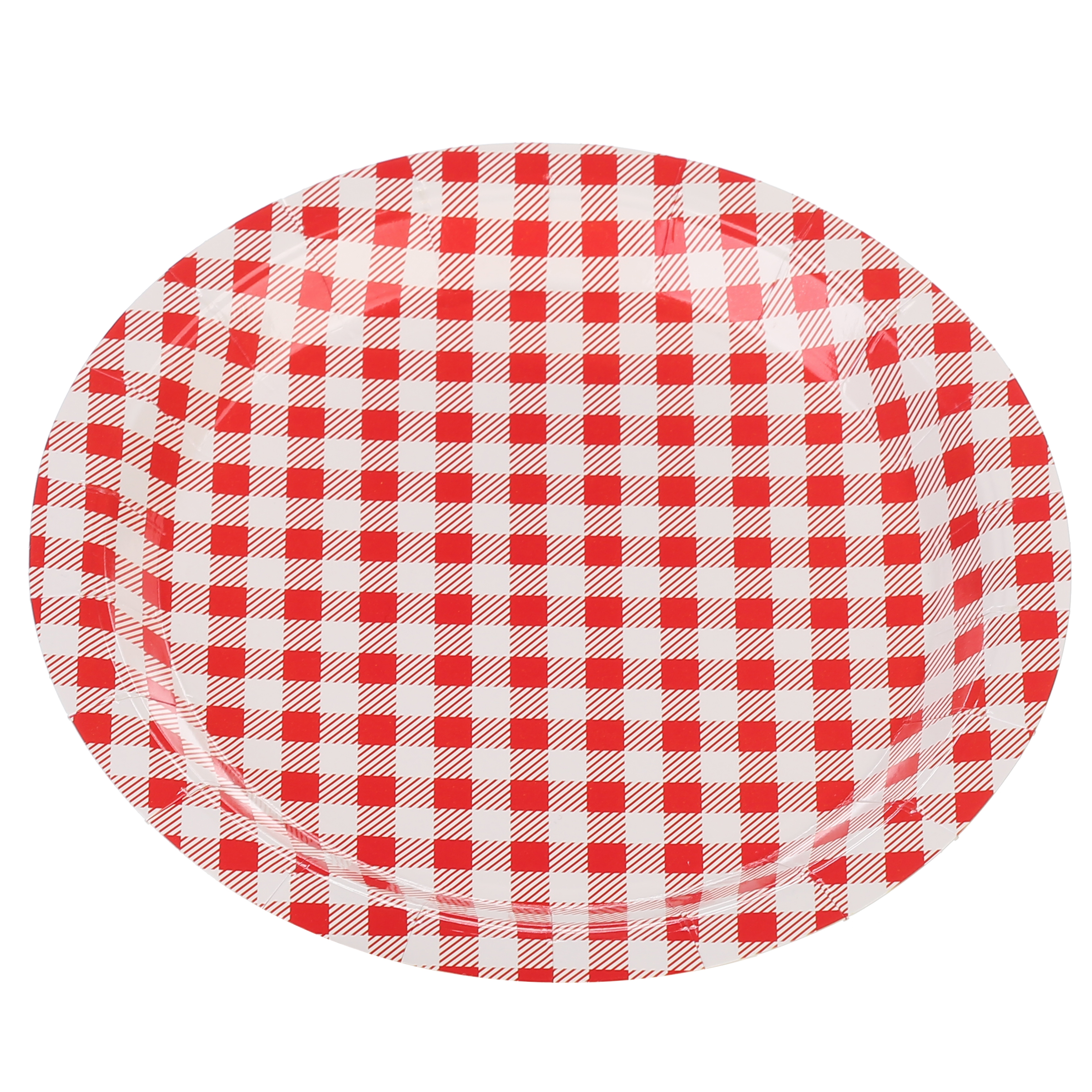 Prato de Papel Xadrez Vermelho e Branco 18cm com 10Un - Silver