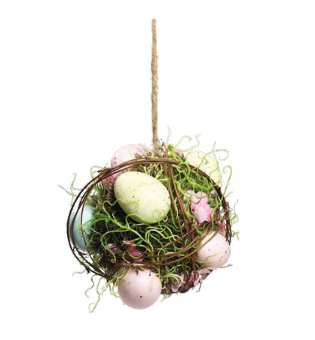 Bola Decorativa de Páscoa Cipó com Ovos Coloridos, Musgo e Galhos - CCS Decorações e Embalagens